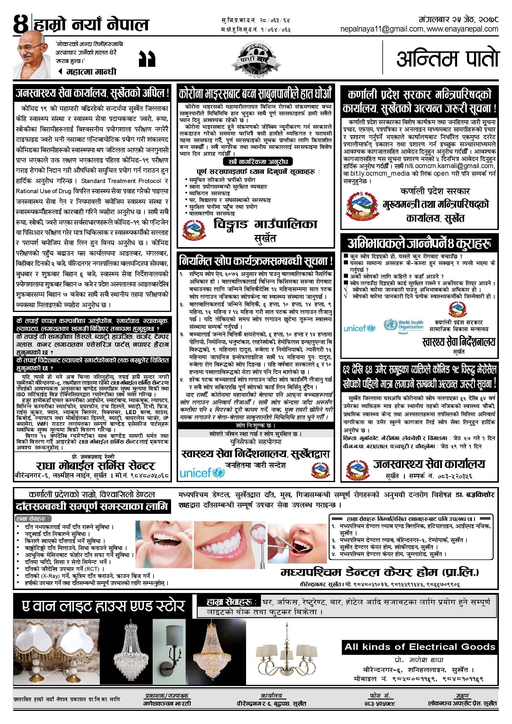 २०७८, २५ जेष्ठ मंगलवार मा प्रकाशित