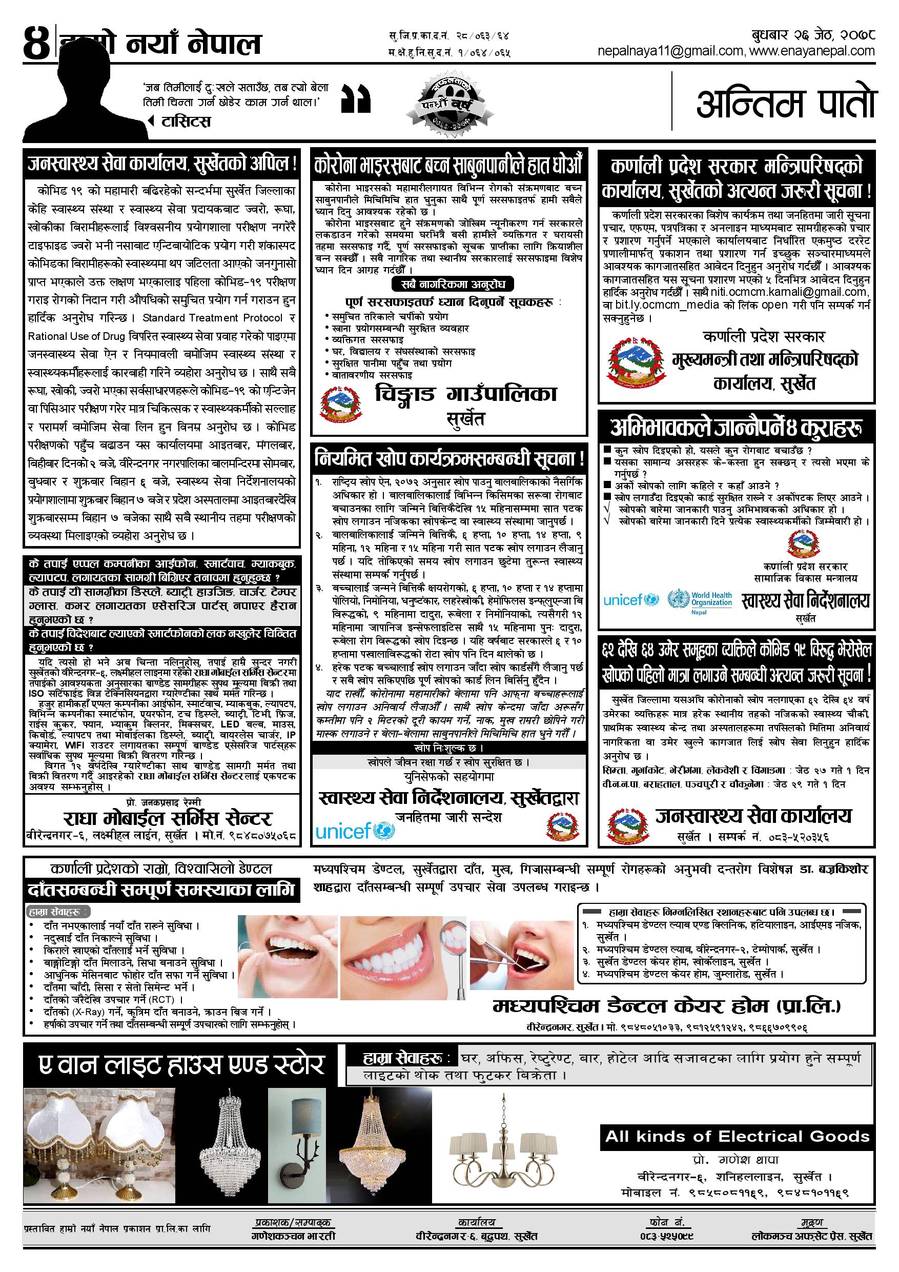 २०७८, २६ जेष्ठ बुधबार मा प्रकाशित