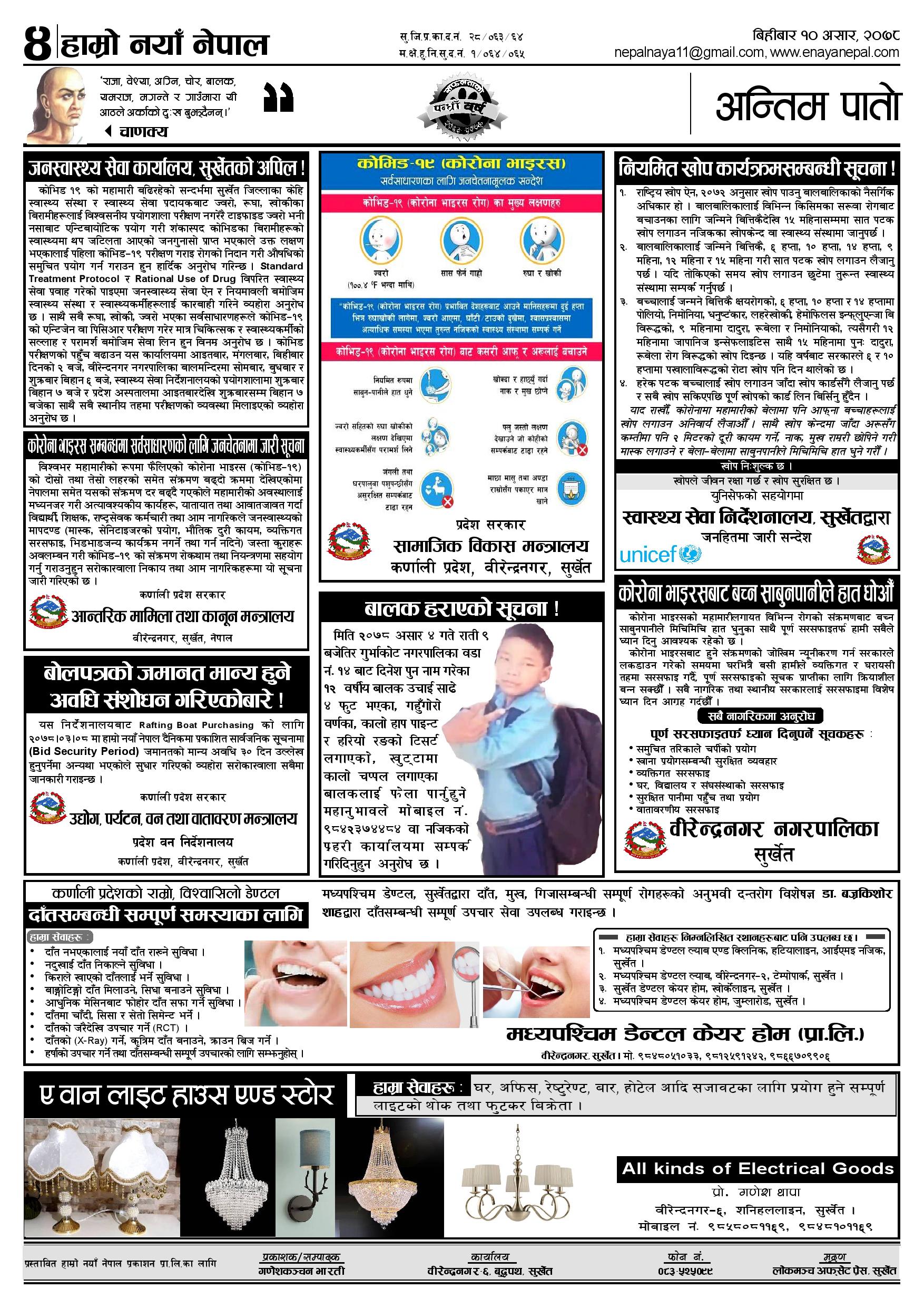 २०७८, १० असार बिहीबार मा प्रकाशित